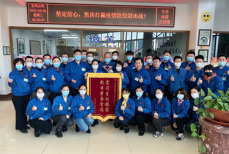 實習(xí)生袁俊秀為公司贈送錦旗 “感恩于五環(huán),家一般溫暖”